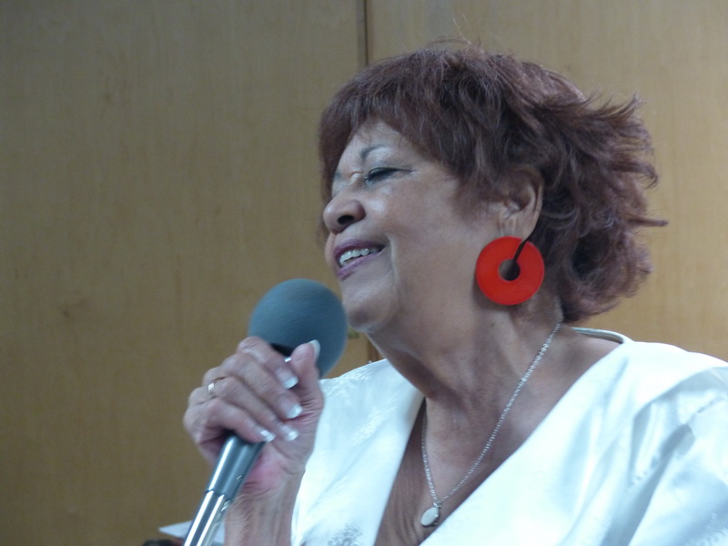 Daughter Anita Gray McClelland flanked by pianist Ceceilla Cosman (left) and Don Sickler,